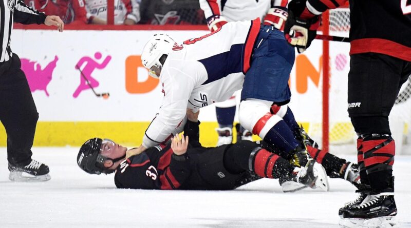 Alex Ovechkin knocks out Andrei Svechnikov in brutal fight, Capitals vs Hurricanes