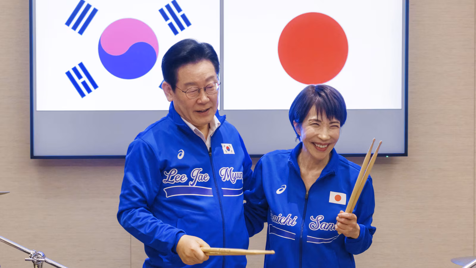 Wearing personalized athletic jackets, they sat side by side and drummed to hits such as BTS’ “Dynamite” and Kpop Demon Hunters’ “Golden” in a short video posted by Takaichi’s office Wednesday.