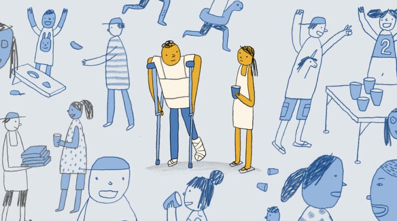 When the pain is unbearable and my guilt and self–pity return, Emma runs me ice baths. She strokes my hair and kisses my face while I lie on the couch after a day of sitting. She “camps” with me in our living room, where the stiff floor provides more back support than a bed. She tries to ease the pain with an amateur massage, or at least wields the massage gun with gusto. She moves our couches and books and picks up whatever I drop. She tells me to do my physical therapy and to exercise. She reminds me about everything I love and can still do.