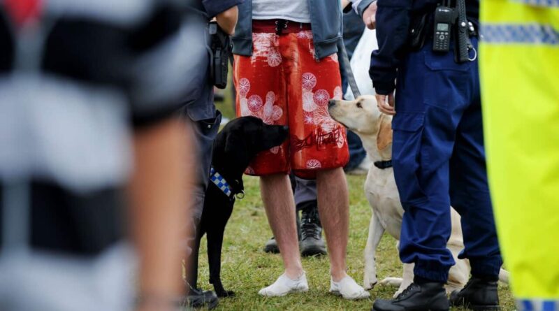 Festival goers using NSW’s first pill testing service won’t be subjected to sniffer dog searches but that doesn’t apply to people on their way to have their substances checked.