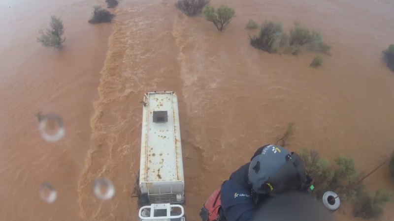 A truck driver has been rescued in the nick of time as flood waters engulfed the vehicle south west of Broken Hill.