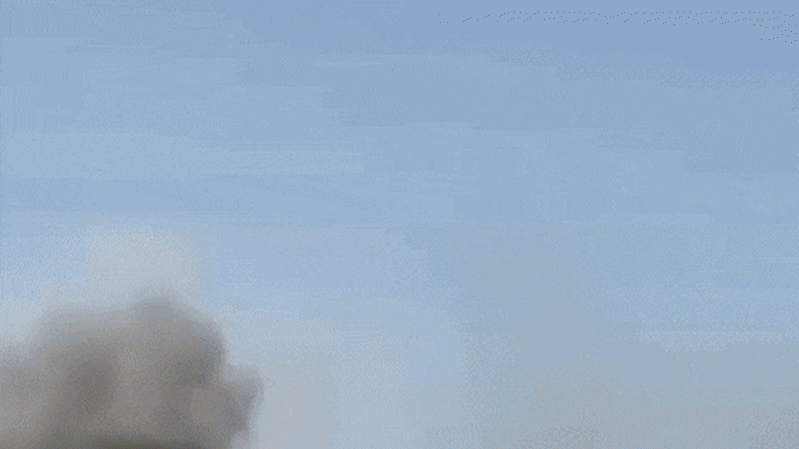 As the camera pans to the right, large plumes of dust and smoke are already billowing from the area around the school, suggesting that it had been struck shortly before the strike on the naval base. This is supported by a timeline of the strikes assembled by the Times that shows the school was hit about the same time as the base.
