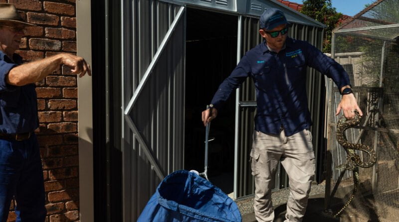 On one recent job, a four-foot brown snake — the world’s second-most venomous snake species, despite the understated name — was wedged between a fly screen and a window, and needed to be taken out. More straightforward was a request to remove a nonvenomous carpet python, its body intricately patterned with whorls and swirls, coiled in the depths of a shed. (Snake removal fees start at 154 Australian dollars, or around $100.)