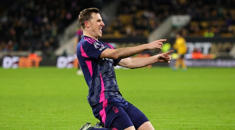 WOLVERHAMPTON, ENGLAND – JANUARY 06: Chris Wood of Nottingham Forest celebrates scoring his team’s second goal during the Premier League match between Wolverhampton Wanderers FC and Nottingham Forest FC at Molineux on January 06, 2025 in Wolverhampton, England. (Photo by David Rogers/Getty Images)Source: Getty Images